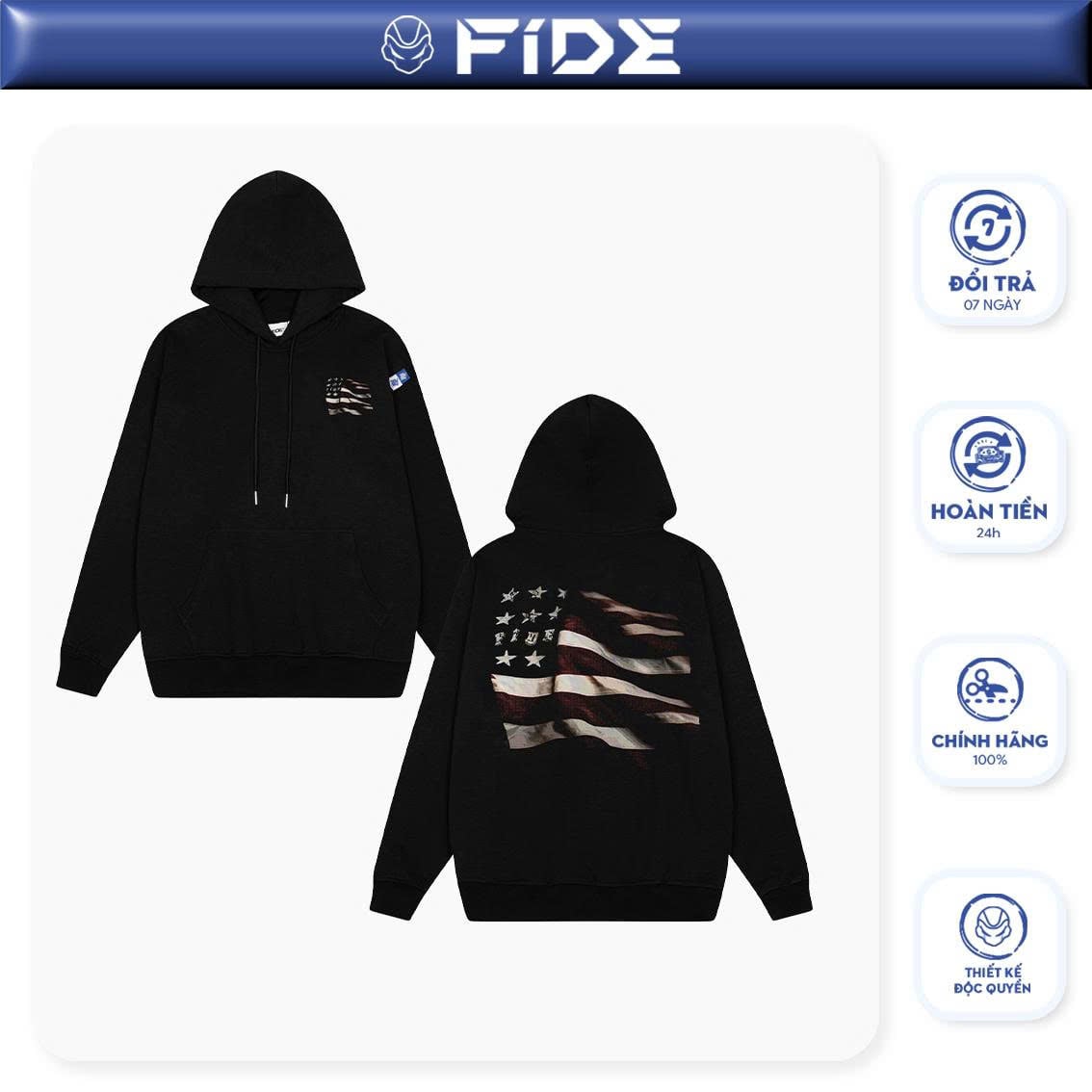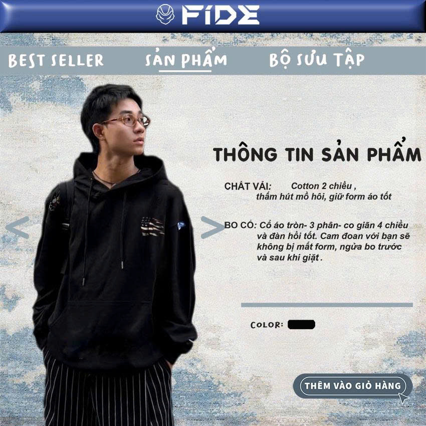 Áo hoodie FIDE lá cờ phong cách Vintage cổ tròn nam nữ HOODIE - HD14