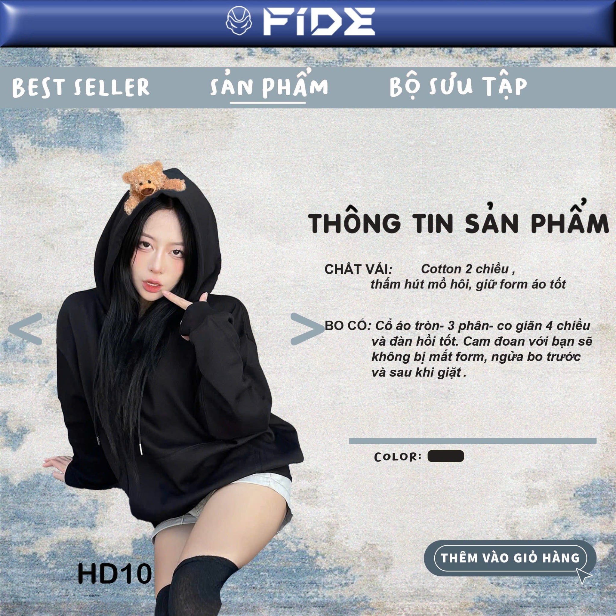 Áo hoodie FIDE TEDDY đính gấu phông trơn nam nữ HOODIE - HD10 (Tặng kèm gấu)
