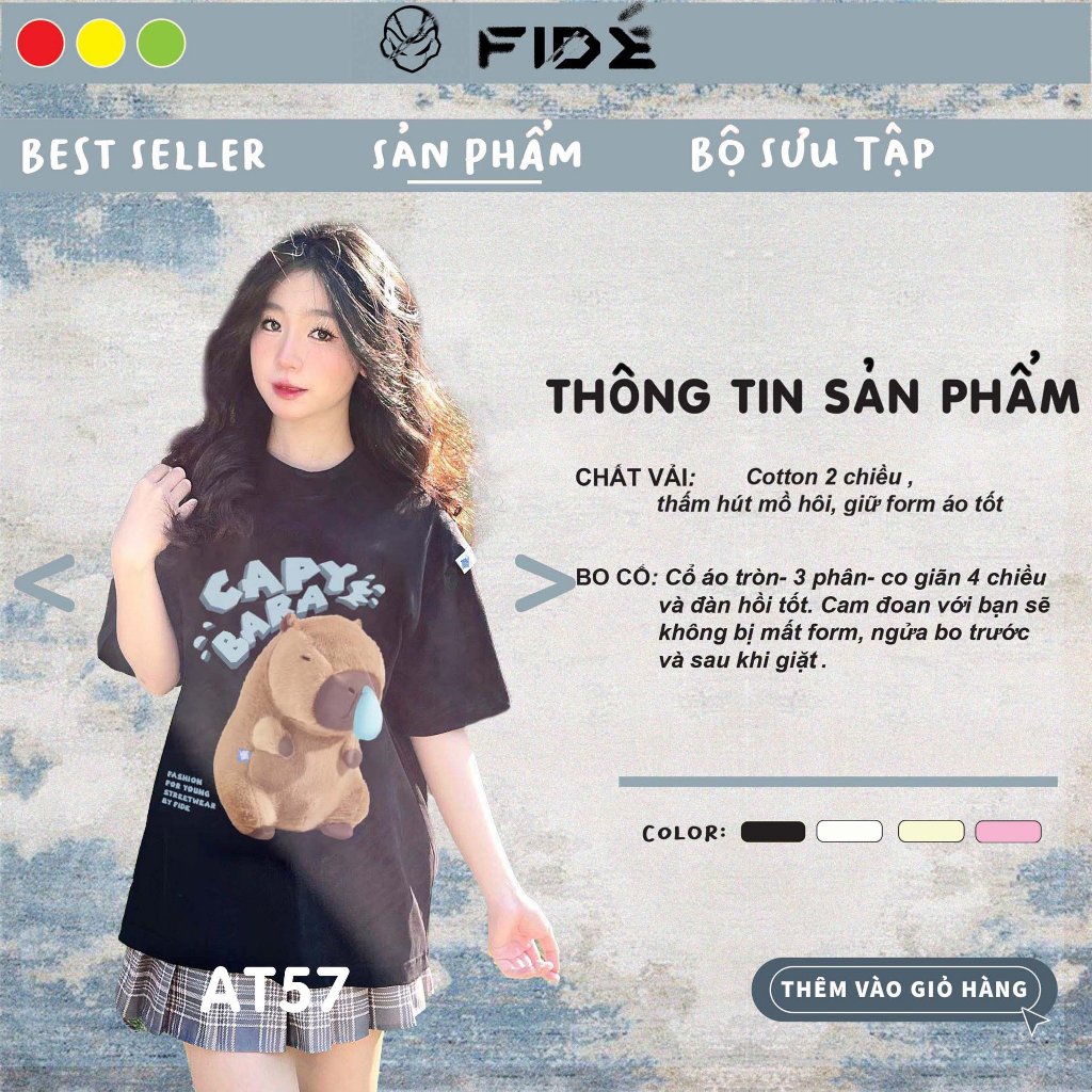 Áo thun FIDE CAPYBARA unisex form rộng cổ tròn CAPYBARA - AT57 Cotton