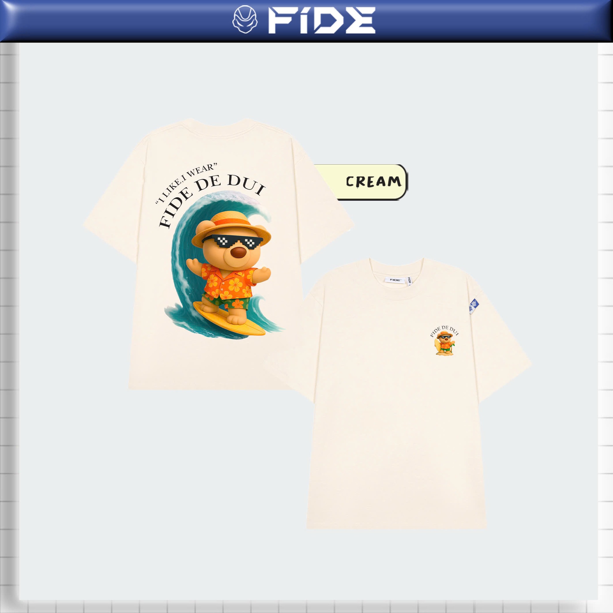 Áo thun FIDE JoyBear unisex form rộng đính gấu local brand cổ tròn oversize - AT174