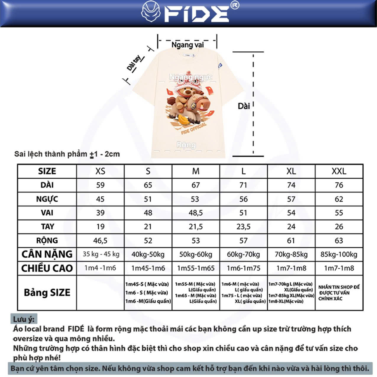 Áo có 5 size: S, M, L, XL, XXL.