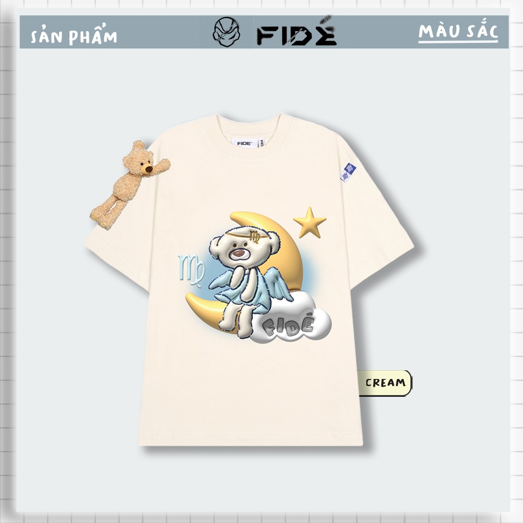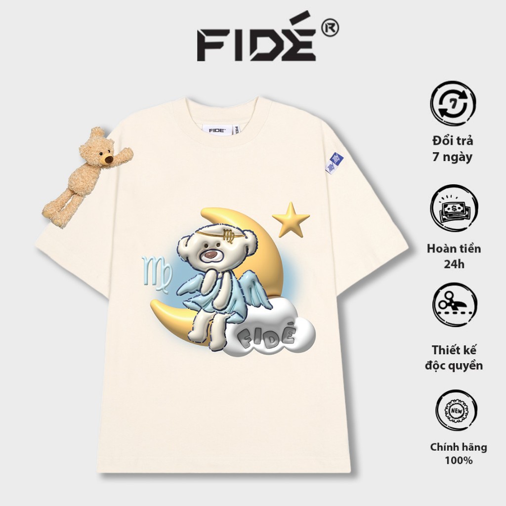 Áo thun FIDE TEEDY phông cotton unisex nam nữ form rộng cổ tròn áo đính gấu - AT78(TẶNG KÈM GẤU)