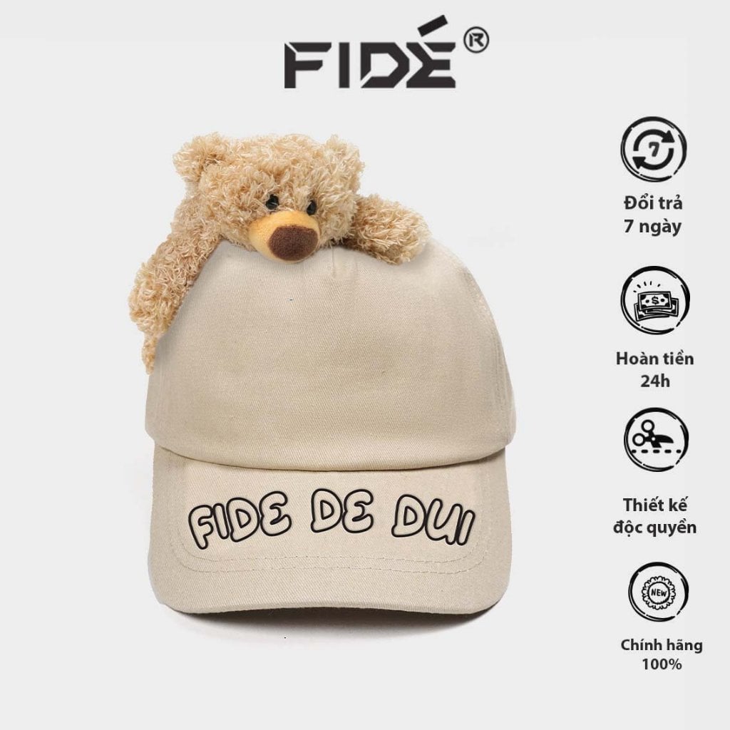 Mũ đính gấu FIDÉ Nón kết thêu FIDÉ unisex chính hãng FIDÉ đính gấu 01 (TẶNG KÈM GẤU) KHUYẾN MÃI - ƯU ĐÃI